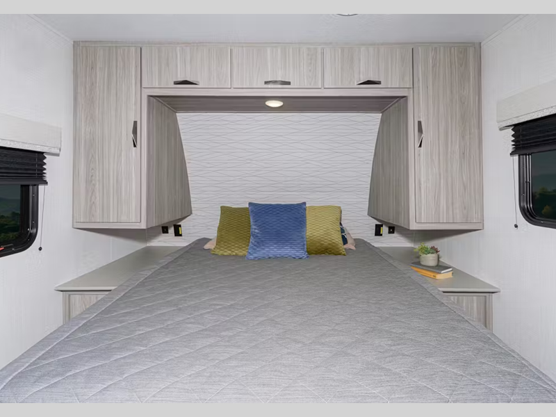 Even though they are smaller in size, they still offer all of the features campers love like a power tongue jack, Solid entry steps, and an exterior convenience center. The Dexter torsion rubber ride suspension will provide smooth towing on each trip, and the heated and enclosed underbelly will help extend your camping season!