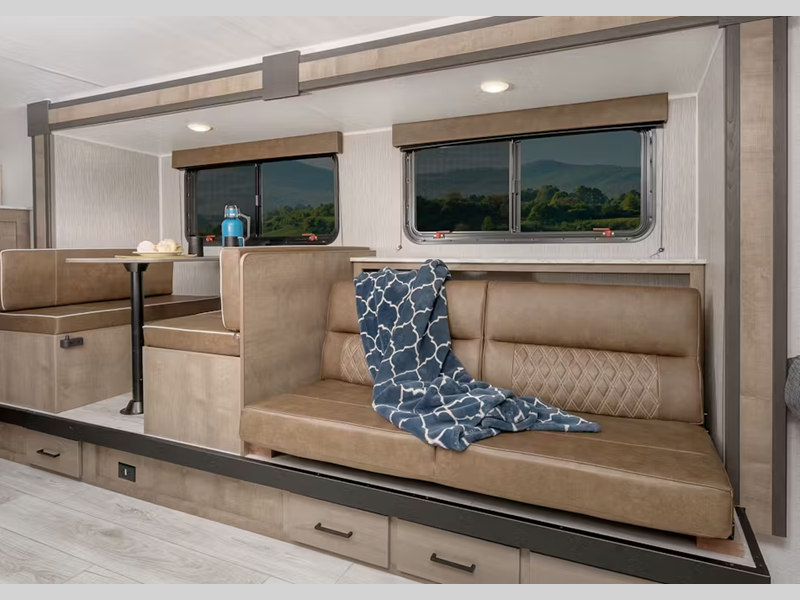 Sleeps 7 Length 22 ft 10 in Ext Width 8 ft Ext Height 10 ft 4 in Interior Color Maple Hitch Weight 465 lbs Dry Weight 3815 lbs Cargo Capacity 1640 lbs Fresh Water Capacity 21 gals Grey Water Capacity 60 gals Black Water Capacity 30 gals Tire Size ST205/75R14D Furnace BTU 20000 btu Number Of Bunks 2 Available Beds Queen Refrigerator Type 12V Refrigerator Size 3.3 cu ft Cooktop Burners 2 Number of Awnings 1 LP Tank Capacity 20 lbs Water Heater Type Girard Tankless AC BTU 5000 btu Awning Info 15' Power Axle Count 1 Number of LP Tanks 1 Shower Type Standard Electrical Service 30 amp Similar Floorplans