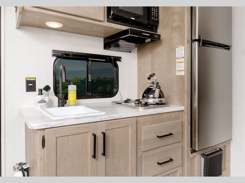 Sleeps 4 Slides 1 Length 22 ft 10 in Ext Width 8 ft Ext Height 10 ft 4 in Interior Color Maple Hitch Weight 555 lbs Dry Weight 4115 lbs Cargo Capacity 1085 lbs Fresh Water Capacity 21 gals Grey Water Capacity 30 gals Black Water Capacity 30 gals Tire Size ST225/75R15E Furnace BTU 20000 btu Available Beds Queen Refrigerator Type 12V Refrigerator Size 7.7 cu ft Cooktop Burners 2 Number of Awnings 1 LP Tank Capacity 20 lbs Water Heater Type Girard Tankless AC BTU 5000 btu Awning Info 15' Power Axle Count 1 Number of LP Tanks 1 Shower Type Standard Electrical Service 30 amp -